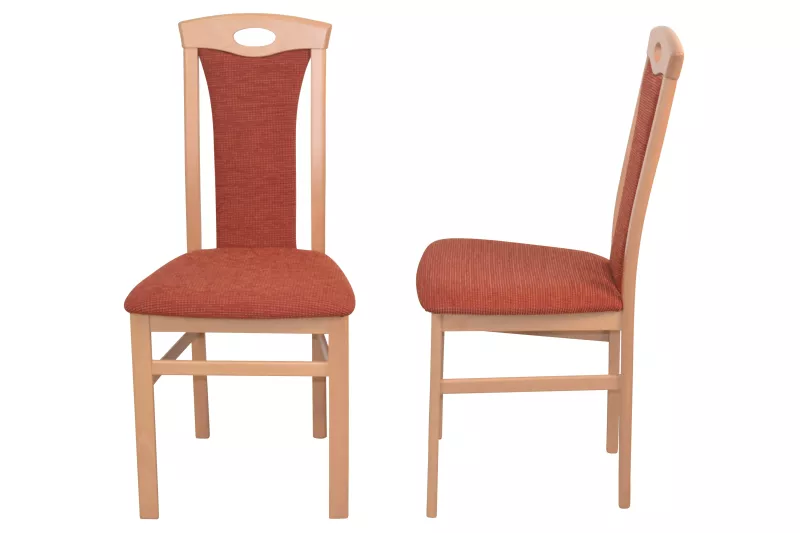 Polsterstuhl im 2er-Set aus Massivholz Buche natur, lackiert. Sitz und Rücken sind bequem schaumstoffgepolstert und mit einem pflegeleichten Stoffbezug (43% Polyacryl/36% Polyester/21% Baumwolle) bezogen.