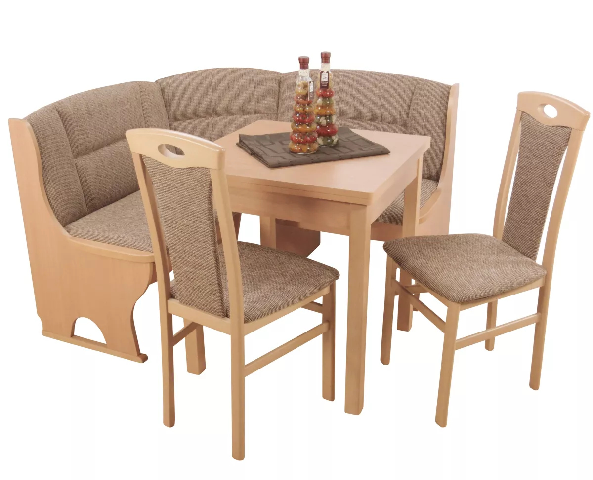 Eckbankgruppe "Josef" 4tlg., bestehend aus Eckbank "Josef" (Schenkelmaße ca. 125x125 cm), Esstisch "Hugo I", Massivholzstühle (2 Stück)