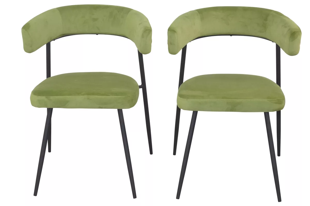 Komfortable Stühle in edler Samtoptik Grün (auch in Creme und Schwarz erhältlich)Die vier dazugehörigen Esszimmerstühle bestechen durch ihren samtig weichen Stoffbezug (100% Polyester) in modernem Uni-Grün. Die angenehm gepolsterten Sitzflächen und die halbrunde Rückenlehne sorgen für maximalen Sitzkomfort und setzen stilvolle Akzente. Das schwarze Metallgestell unterstreicht das moderne Industriedesign und harmoniert perfekt mit dem Tisch.