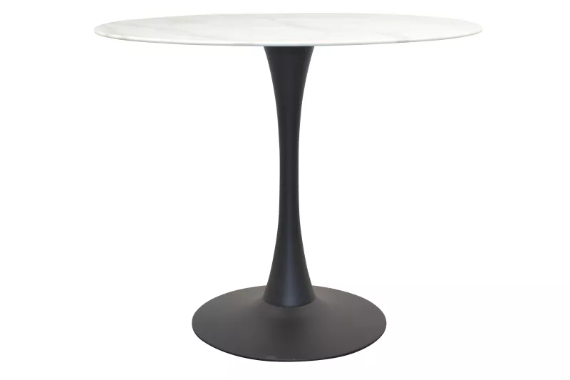 Design & MaterialienDer runde Esstisch (Ø 90 cm, Höhe 75 cm) überzeugt durch seine hochwertige Tischplatte aus Sicherheitsglas in edler weißer Marmoroptik. Die nur 0,8 cm starke Glasplatte wirkt filigran, ist aber dank der stabilen Konstruktion robust und pflegeleicht. Getragen wird sie von einem stabilen Säulenfuß aus schwarz pulverbeschichtetem Metall, der mit einem Durchmesser von 49 cm sicheren Stand bietet. Das moderne Design verleiht dem Tisch Leichtigkeit und Eleganz zugleich.