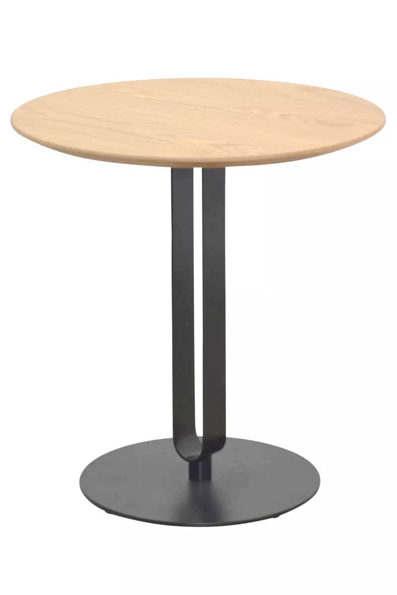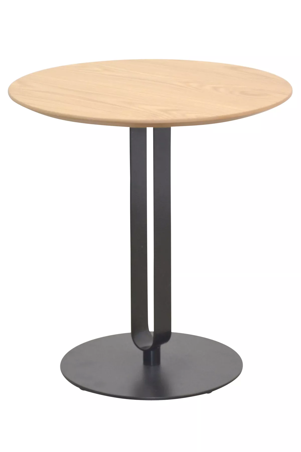 Die runde Tischplatte aus MDF ist mit echtem eichefarbenem Echtholzfurnier versehen und sorgt für eine besonders hochwertige Haptik. Das pulverbeschichtete Metallgestell bietet nicht nur Stabilität, sondern setzt auch stilvolle Kontraste. Ob als Couchtisch, Nachttisch oder Ablagetisch – dieser Tisch ist vielseitig einsetzbar und ein echter Blickfang.