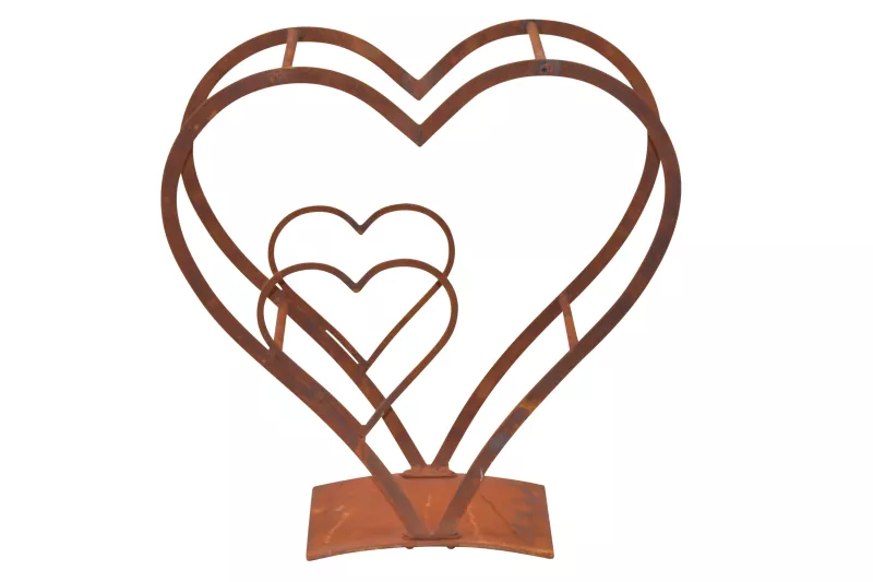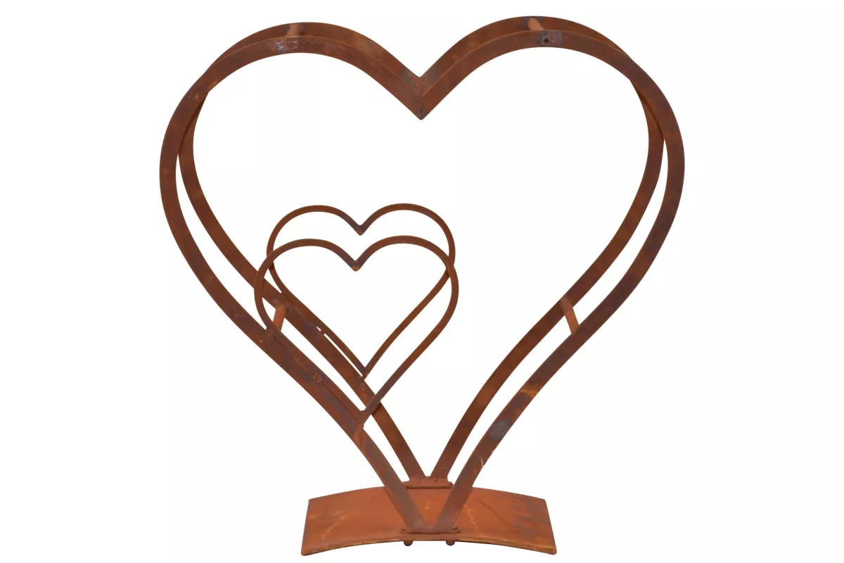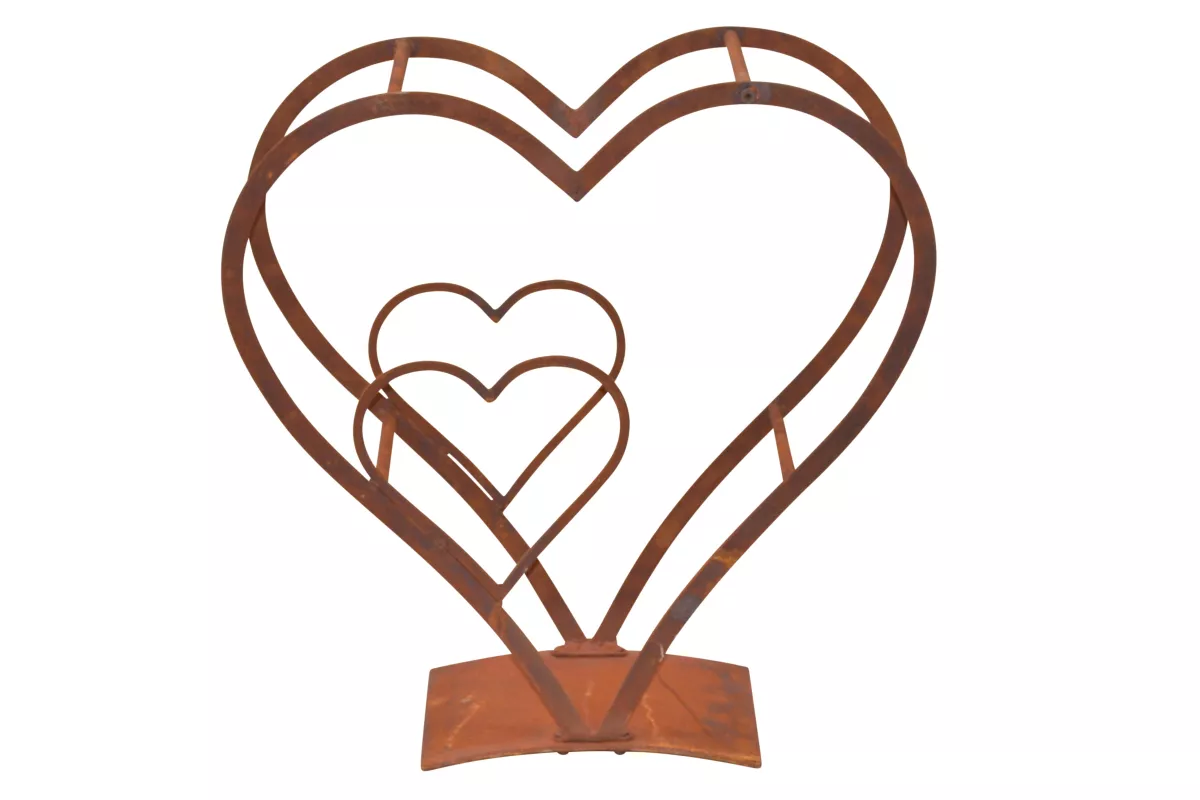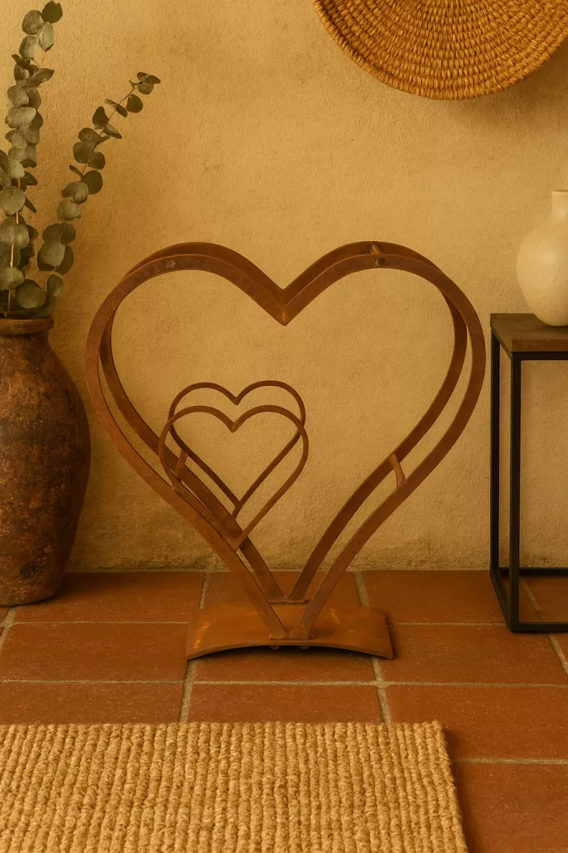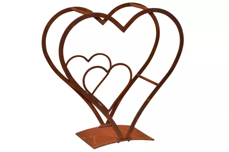 Dieses dekorative Herzregal aus Stahlrohr vereint romantisches Design mit praktischer Funktionalität. Die außergewöhnliche Herzform mit einem großen und einem kleinen Herz macht das Regal zu einem echten Blickfang – ob als Feuerholzhalter, Dekoobjekt oder Geschenkidee.