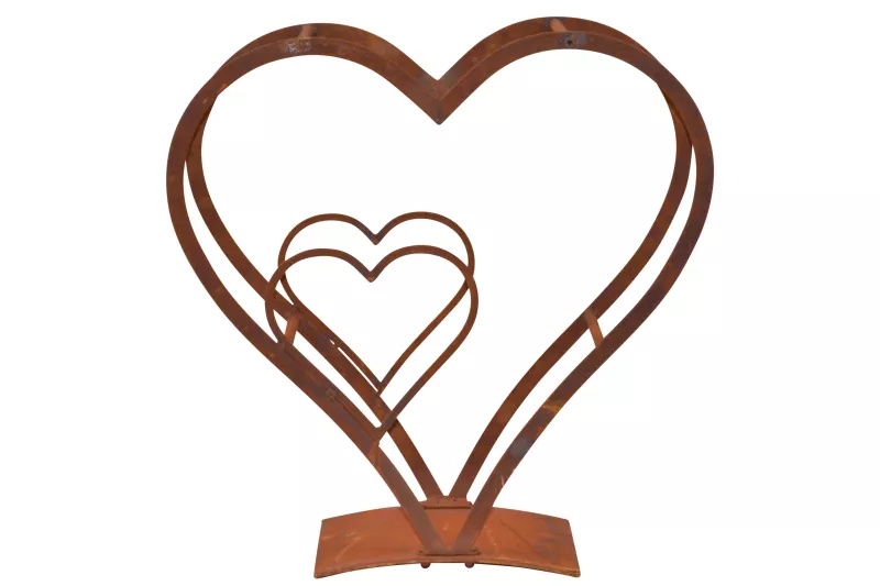 Mit einer Breite von 59 cm, einer Höhe von 60 cm und einer Tiefe von 23 cm bietet das Regal ausreichend Platz für dekorative Accessoires oder Holzscheite. Das kleine Herz im Inneren (ca. 21 × 20 cm) verleiht dem Design eine besondere Tiefe und Symbolik.