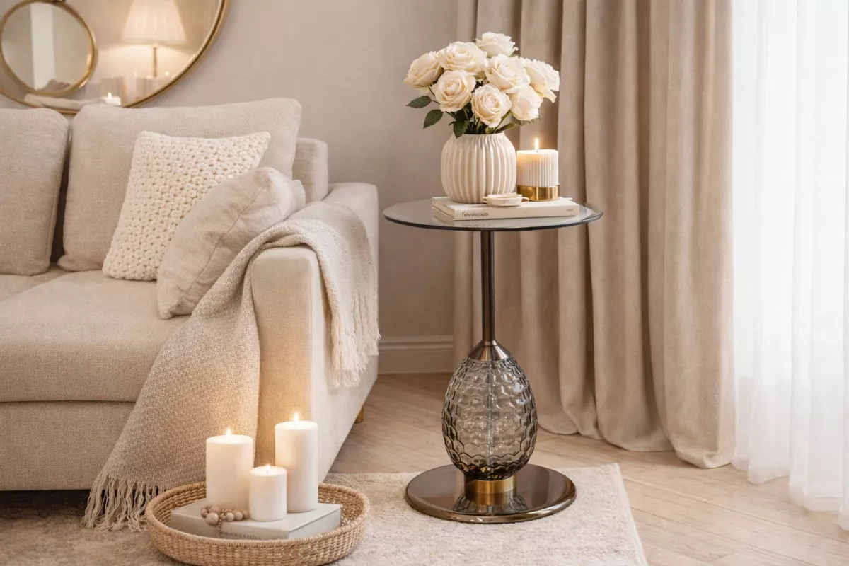 Dieser runde Glas-Beistelltisch ist perfekt als Ablage für Lampen, Bücher, Getränke oder Dekoration. Durch sein modernes Design harmoniert er ideal mit minimalistischen, glamourösen und modernen Wohnstilen und lässt sich hervorragend mit schwarzen, goldenen oder chromfarbenen Möbeln kombinieren.
