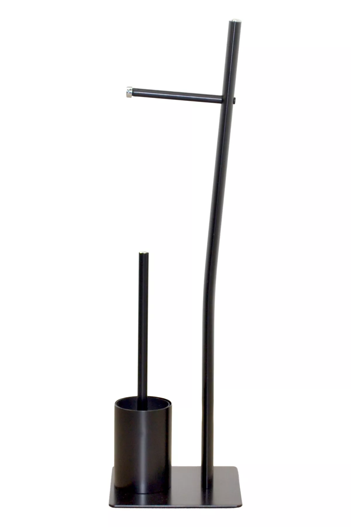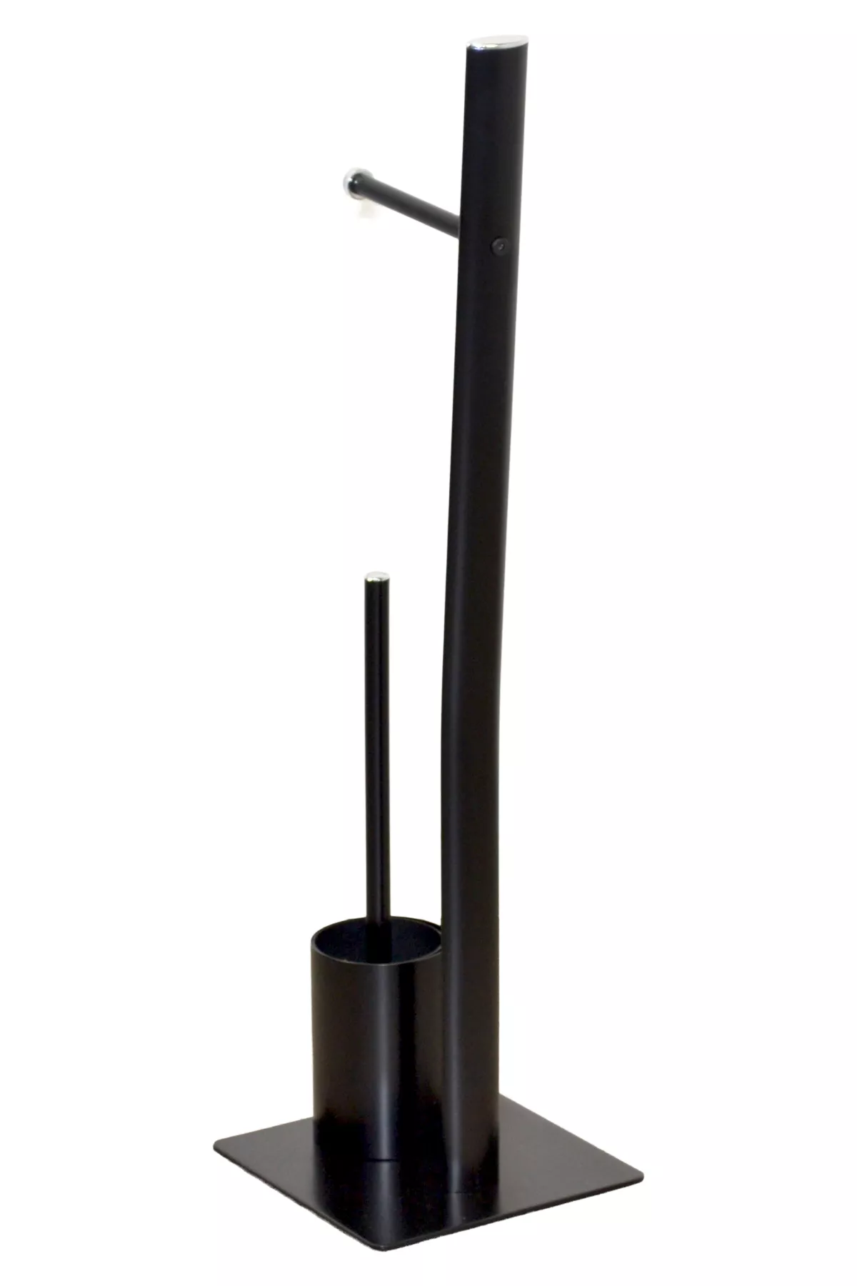 Die Kombination aus Toilettenpapierhalter im oberen Bereich und integriertem Bürstenhalter inklusive WC-Bürste im unteren Bereich bietet eine platzsparende und ordentliche Lösung. Durch den stabilen Standfuß steht die WC-Garnitur sicher und kann flexibel im Raum positioniert werden – ganz ohne Bohren.