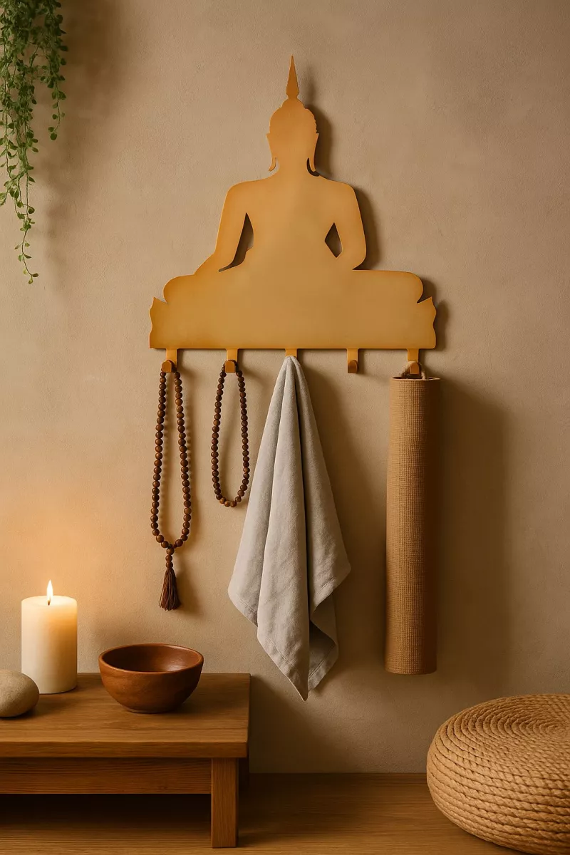 Bringe Harmonie und Stil in deinen Eingangsbereich: Die goldfarbene Garderobenleiste „Buddha“ ist mehr als nur praktisch – sie ist ein echtes Design-Statement! Gefertigt aus hochwertigem Metall und mit einer goldfarbenen Beschichtung, vereint sie Funktionalität mit ästhetischer Eleganz.
