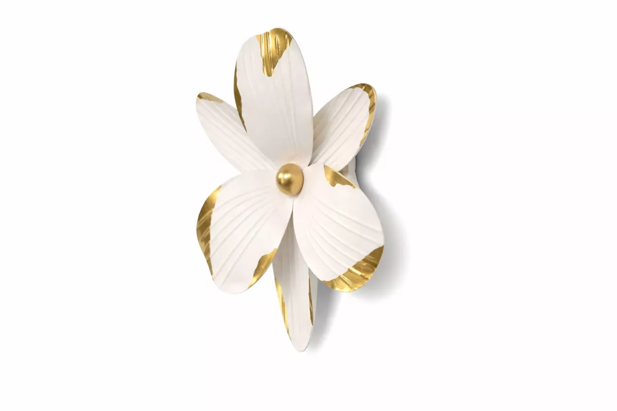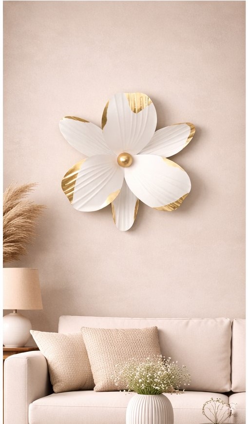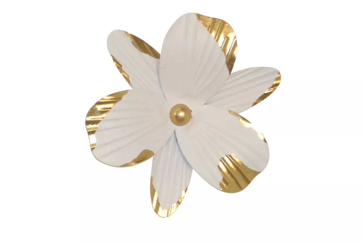 Wanddeko Blume Metall Ø 37 cm – Stilvolle 3D Wanddekoration in Weiß & Gold