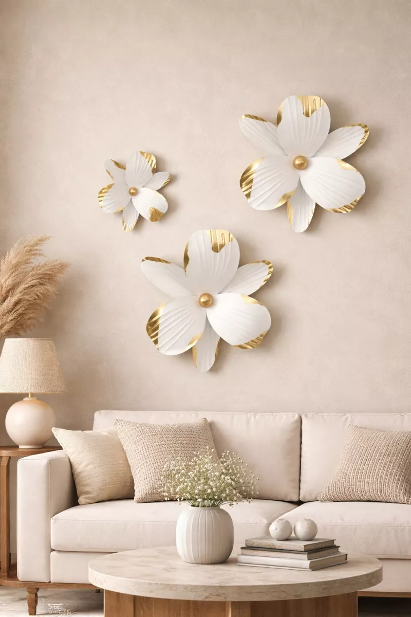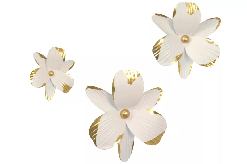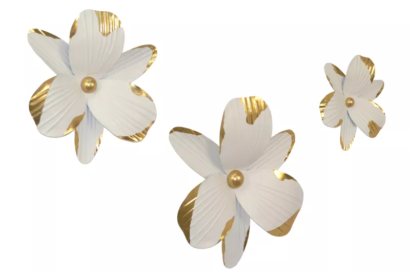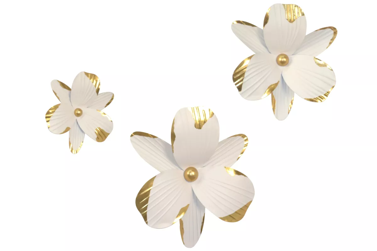 Elegante Wanddekoration Blüte aus Metall – Weiß & Gold, 3 Größen