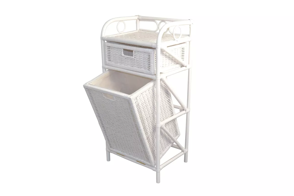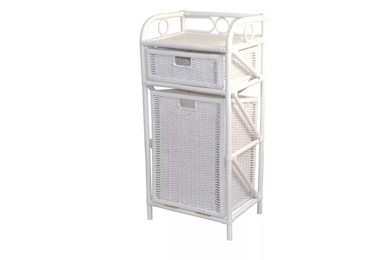 Rattan Regal mit Wäschekorb – Handgeflochten, Weiß Lackiert, mit Wäschesack