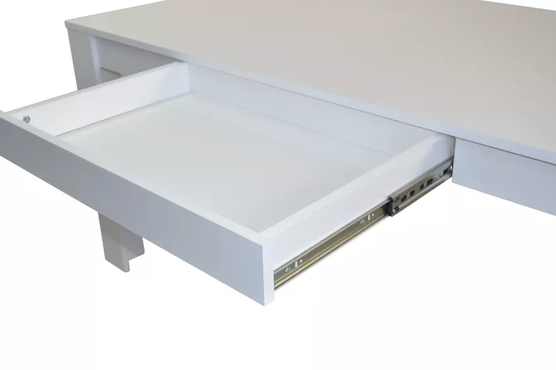 Unter der großen Tischplatte 160x90 cm befindet sich auf einer Seite eine große Schublade mit Metallauszug.