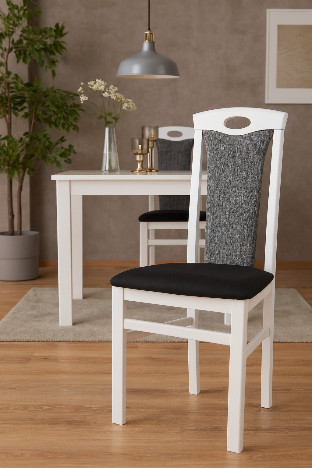 Der moderne 2er Set Esszimmerstühle aus massivem Buchenholz vereint elegantes Design mit hoher Alltagstauglichkeit. Das weiß lackierte Gestell sorgt für eine helle, freundliche Optik und fügt sich mühelos in verschiedenste Einrichtungsstile ein – von skandinavisch bis modern klassisch.