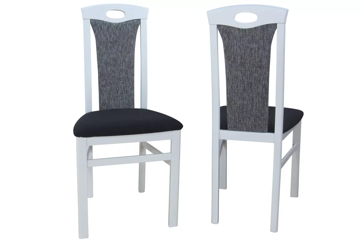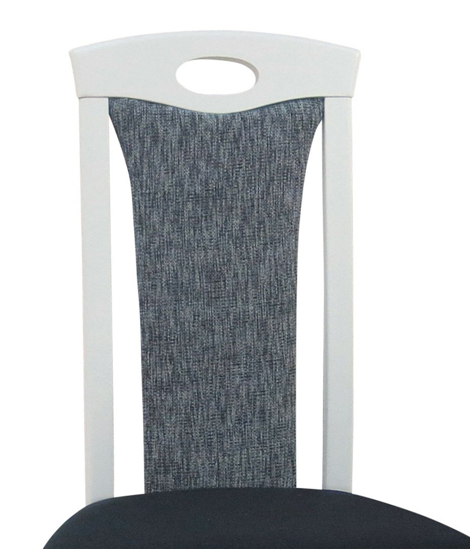 Ein besonderes Highlight ist die halboffene Rückenlehne mit praktischer Griffmulde im Kopfteil, die den Stuhl nicht nur optisch aufwertet, sondern auch das Verrücken erleichtert. Die strapazierfähige Stoffkombination in Grau-Anthrazit ist zu 100 % aus Polyester gefertigt, pflegeleicht und überzeugt durch ihre moderne Struktur – ideal für den täglichen Gebrauch.