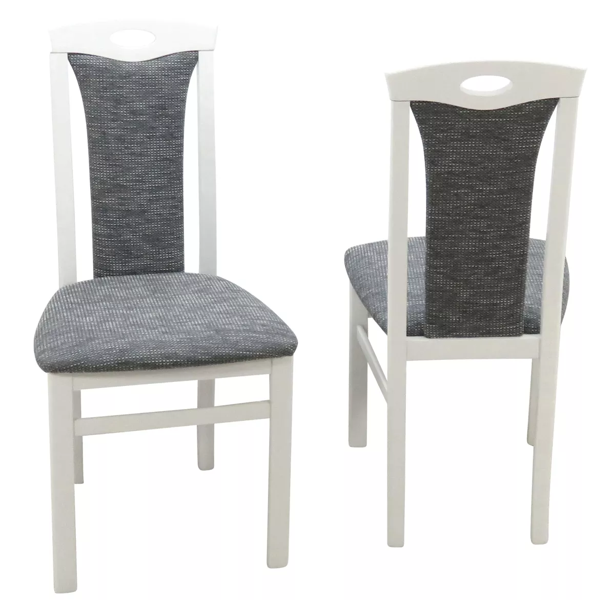 Diese modernen Esszimmerstühle vereinen stilvolles Design, hochwertige Materialien und angenehmen Sitzkomfort. Das stabile Untergestell aus massivem Buchenholz, weiß lackiert, verleiht den Stühlen nicht nur eine elegante Optik, sondern sorgt gleichzeitig für hervorragende Standfestigkeit. Die formschöne Rückenlehne ist mit einem praktischen Muschelgriff ausgestattet, der das Verschieben und Anheben mühelos ermöglicht – ein funktionales Detail für den Alltag.