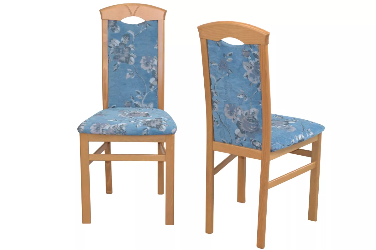 Sitzfläche und Rücken sind bequem schaumstoffgepolstert und mit einem attraktiven Stoffebezug (100% Polyester) in blau mit Blumenmotiv, bezogen