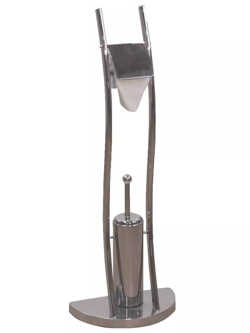 Dieser moderne Toilettenbürstenhalter aus Metall ist freistehend und verfügt über ein elegantes Chrom-Finish.