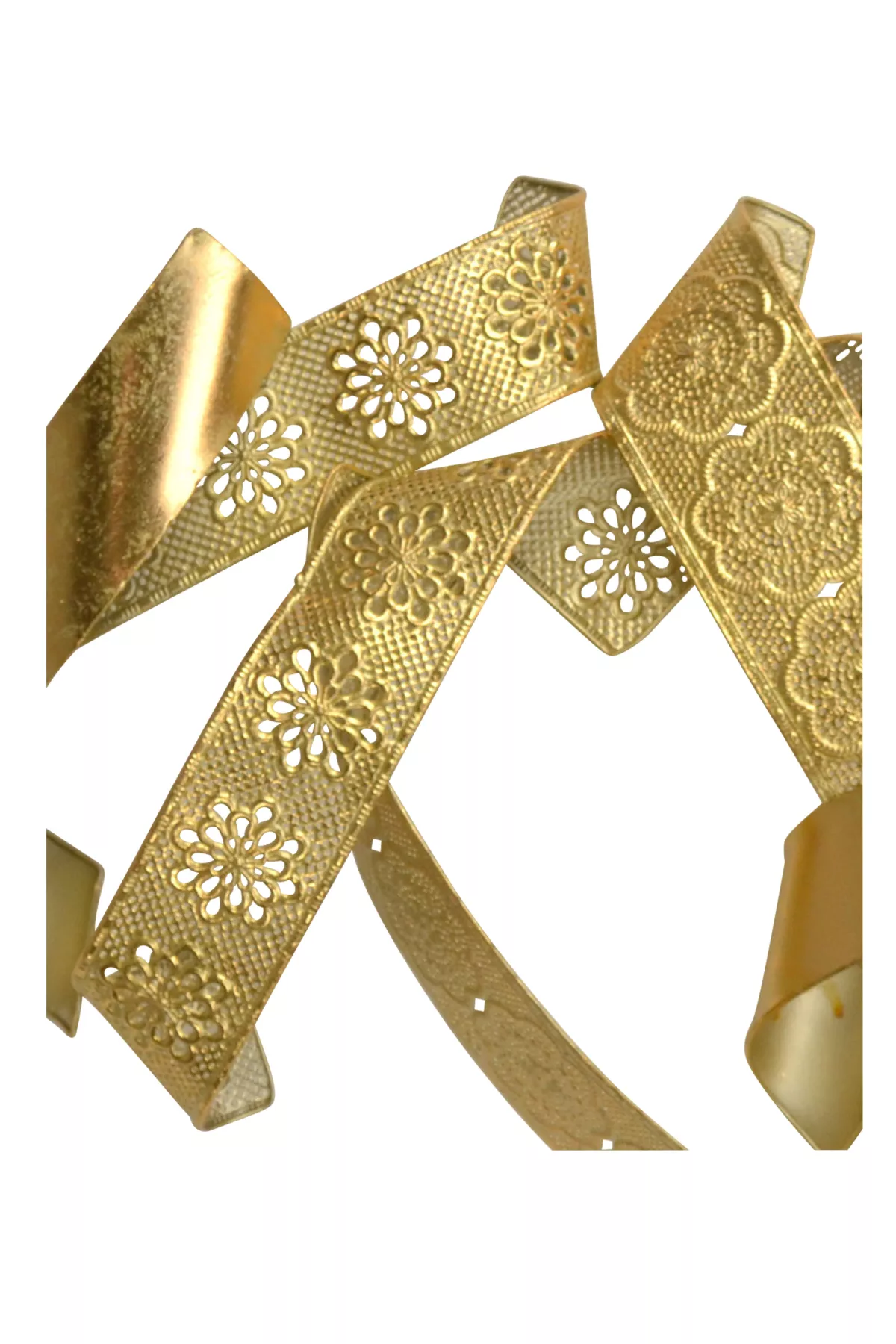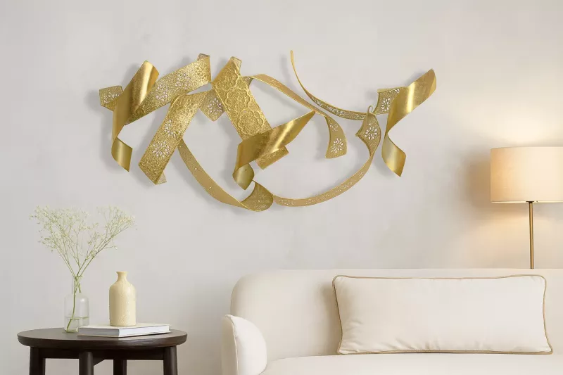 Bringen Sie mit dieser goldenen Metall-Wanddekoration Glanz und Stil in Ihr Zuhause – ein Stück moderner Eleganz, das Kunst und Design perfekt vereint.