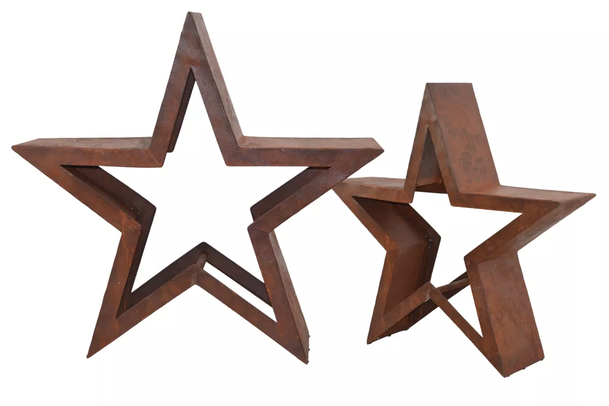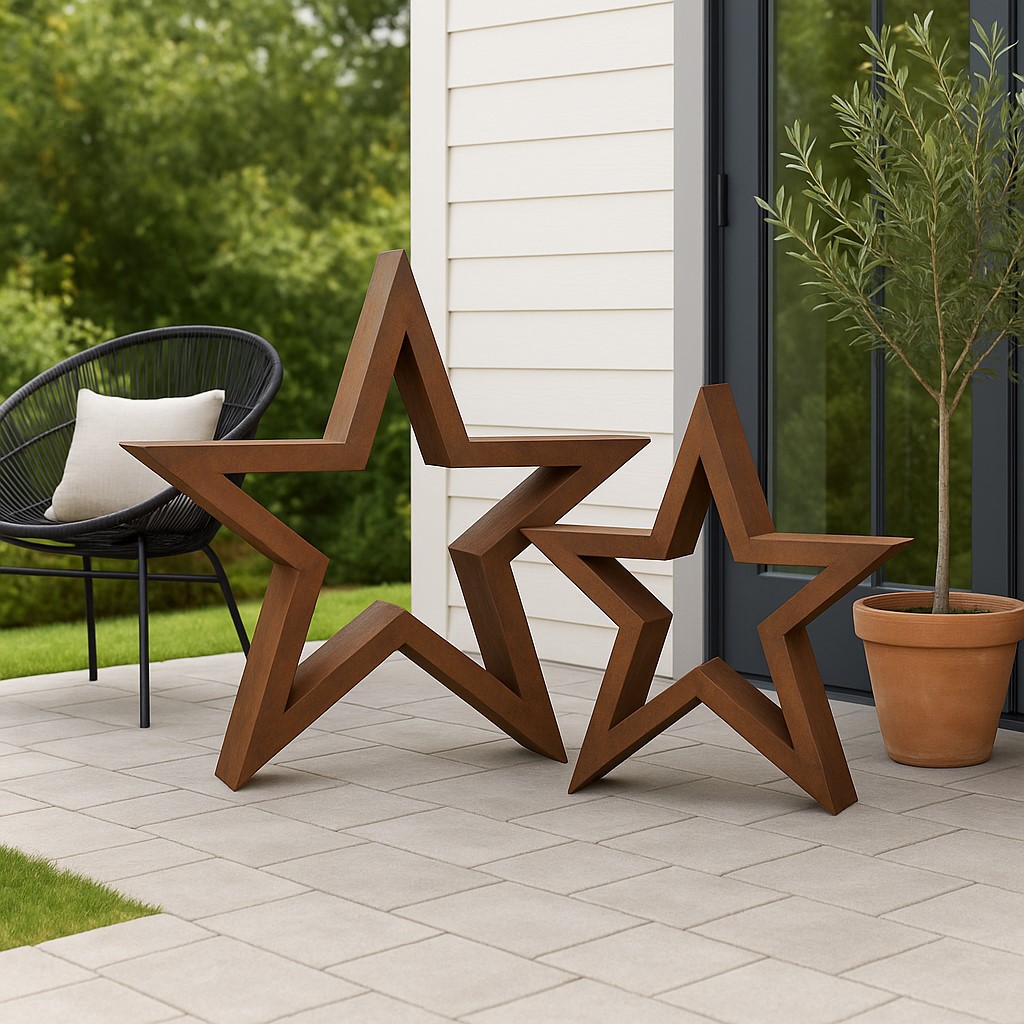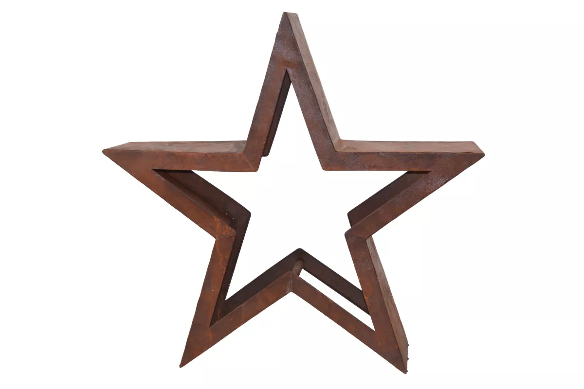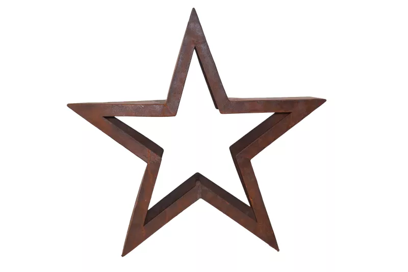 Mit diesem trendigen Metallstern aus hochwertigem Eisen setzen Sie einen echten Blickfang – egal ob im Wohnzimmer, Wintergarten oder Eingangsbereich. Die rostige Oberfläche verleiht der Dekoration einen industriellen und zugleich warmen Charme, der perfekt zu modernen wie rustikalen Einrichtungsstilen passt.