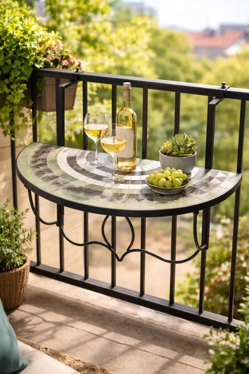 Verwandle deinen Balkon in eine stilvolle Wohlfühloase! Dieser halbrunde Balkontisch zum Einhängen ist die perfekte Lösung für kleine Balkone und schafft im Handumdrehen eine praktische und dekorative Ablagefläche.