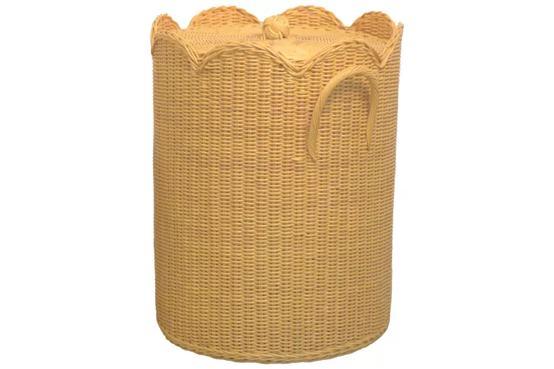 Dieser hochwertige Wäschesammler aus Rattan vereint natürliche Optik mit funktionalem Design und wird zum stilvollen Highlight in jedem Badezimmer, Schlafzimmer oder Hauswirtschaftsraum. Der komplett handgeflochtene Wäschekorb überzeugt durch seine robuste Verarbeitung und seine warme, beige gebeizte und lackierte Oberfläche, die perfekt zu modernen, skandinavischen oder natürlichen Wohnstilen passt.