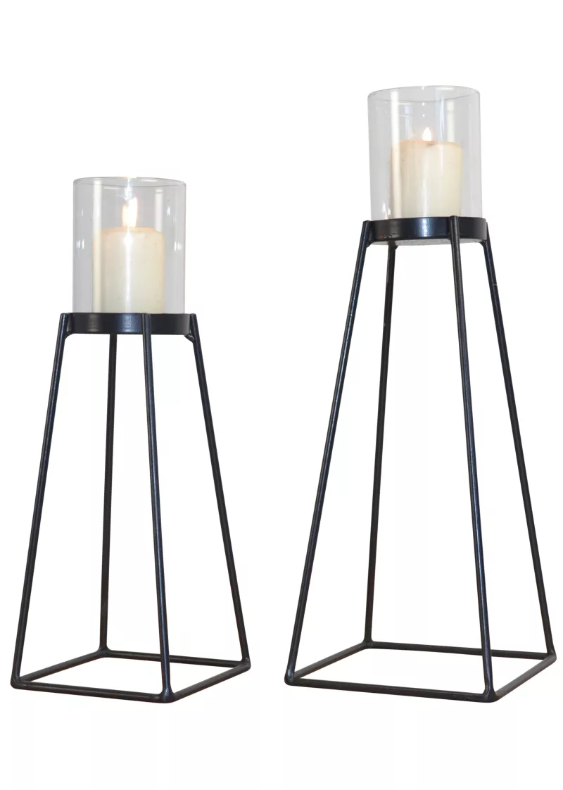 Setzen Sie stilvolle Akzente mit diesem exklusiven Kerzenhalter-Set (2-teilig) aus hochwertigem Metall! Die schwarz pulverbeschichtete Oberfläche sorgt für eine moderne, matte Optik, die sich harmonisch in jedes Interieur einfügt – ob skandinavisch, industriell oder minimalistisch.