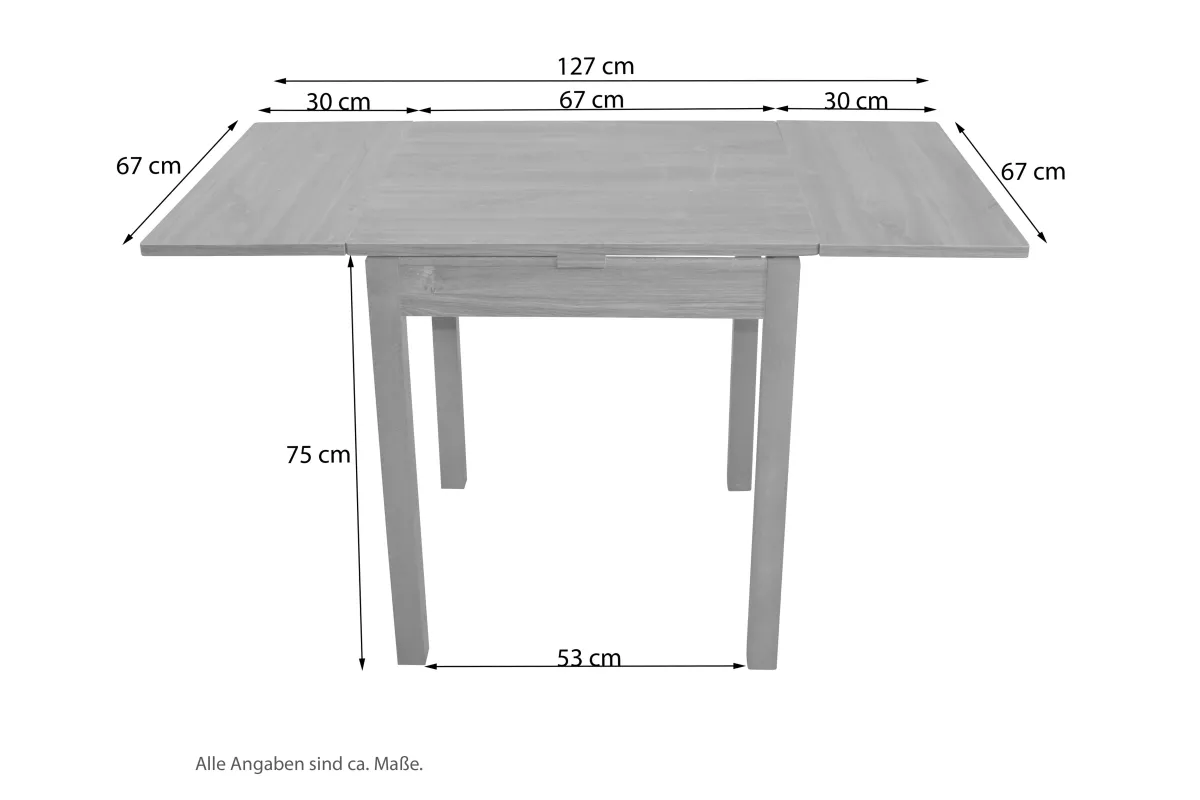 Maße vom Tisch ca. cm: B. 67 - 127 x T. 67 x H. 75 cm.
