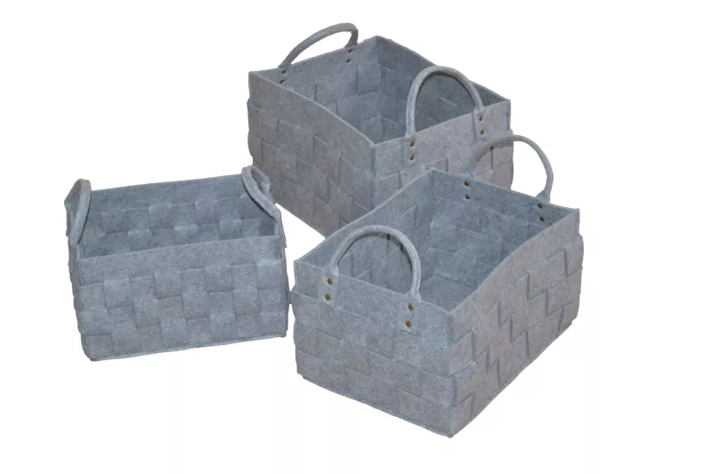 3-teiliges Korbset aus Filzoptik in elegantem Grau