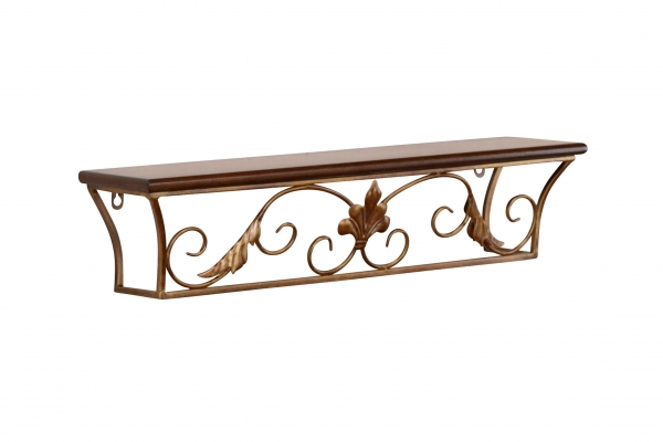 Attraktive Wandkonsole im Landhausstil mit einem antik goldfarbenen Metallgestell mit reichlicher Verzierung in der Front.
