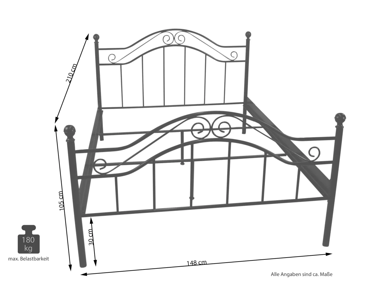 Verleihen Sie Ihrem Schlafzimmer eine stilvolle und zugleich romantische Atmosphäre mit diesem eleganten Metallbett im Landhausstil. Die geschwungenen Verzierungen und das zeitlose Design machen dieses Bett zu einem echten Blickfang und schaffen ein harmonisches Ambiente zum Wohlfühlen.