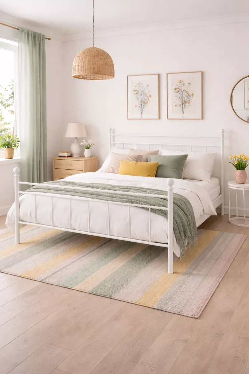 Die weiß pulverbeschichtete Oberfläche sorgt nicht nur für eine elegante Optik, sondern ist zugleich besonders pflegeleicht, robust und langlebig. So bleibt dein Bett auch bei täglicher Nutzung dauerhaft schön.