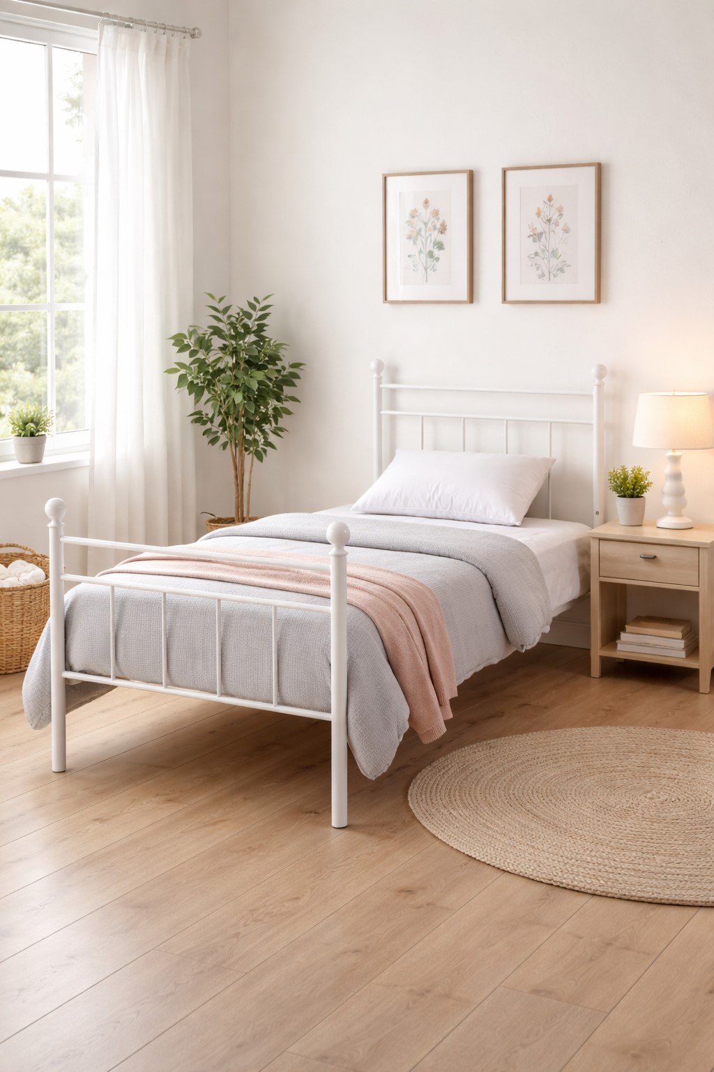 Die pflegeleichte, weiß pulverbeschichtete Oberfläche sorgt nicht nur für eine edle Optik, sondern macht das Bett besonders langlebig und robust. Dank der stabilen Metallkonstruktion bietet das Einzelbett zuverlässigen Halt und hohen Schlafkomfort.