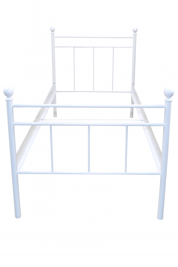Metallbett mit einer pflegeleichten Oberfläche weiß pulverbeschichtet. Passend für alle handelsüblichen Lattenroste (außer Rolllattenroste) und Matratzen.