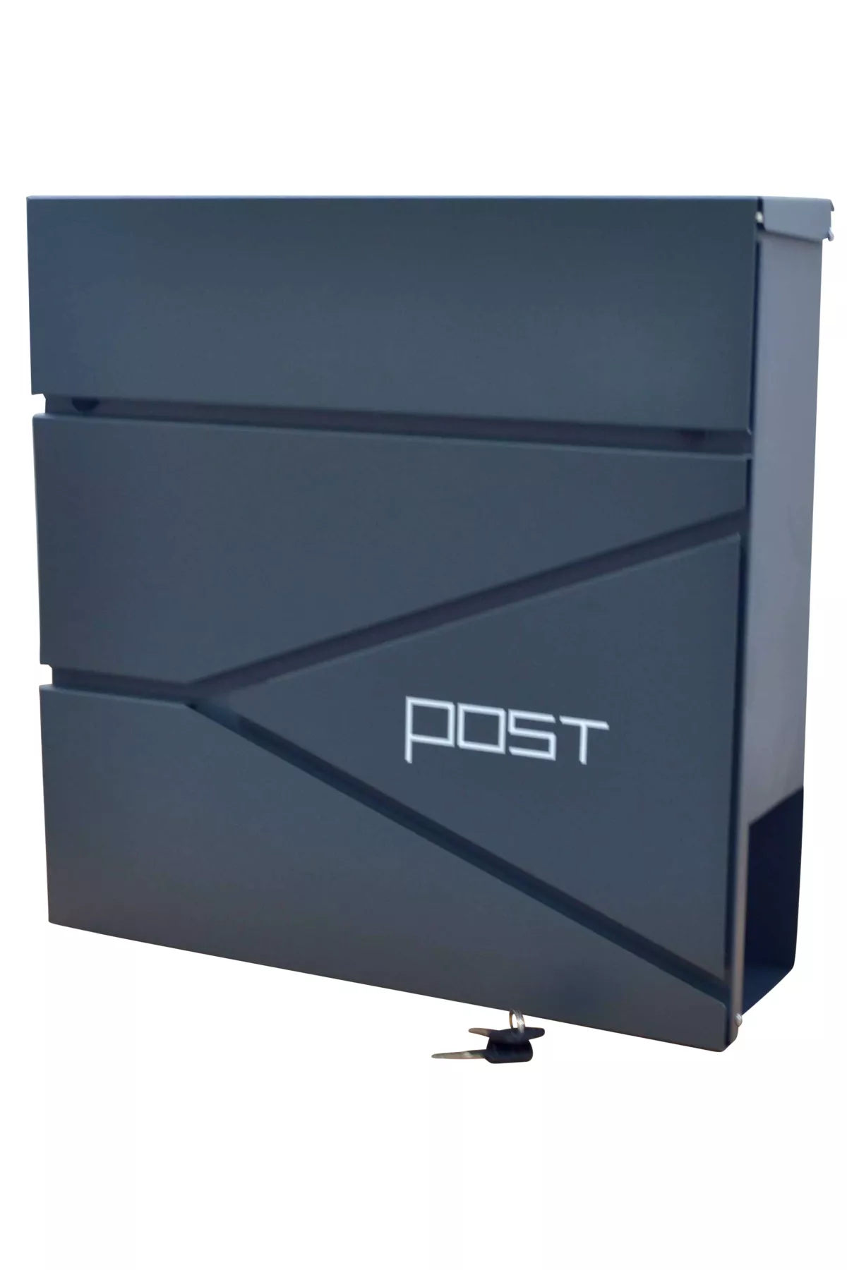 Die Klappe mit Softabsenkung sorgt für ein leises und komfortables Öffnen. Direkt darunter befindet sich der großzügige Briefeinwurfschlitz mit ca. 33,5 x 2,8 cm, der auch größere Briefsendungen problemlos aufnimmt. Die Front ist mit dem dezenten Aufdruck „Post“ versehen und lässt sich dank integriertem Schloss inklusive zwei Schlüsseln sicher aufklappen.