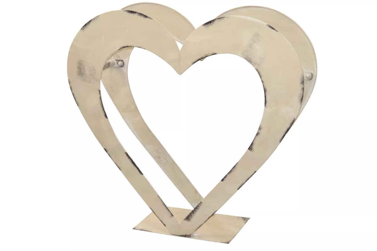 Verleihen Sie Ihrem Zuhause oder Garten einen besonderen Charme mit diesem trendigen Metallregal in Herzform. Das dekorative Regal besteht aus robustem Eisen und besticht durch seine antik altweiße, gewischte Oberfläche, die jedem Ambiente einen romantisch-vintage Stil verleiht.