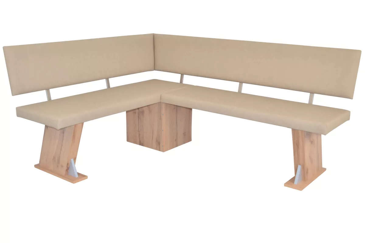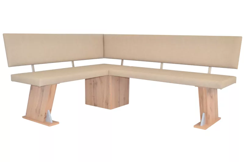 Gestell der modernen Eckbank ist aus Holzwerkstoff gefertigt und mit einer hochwertigen Melaminharzbeschichtung in Eichedekor beschichtet.