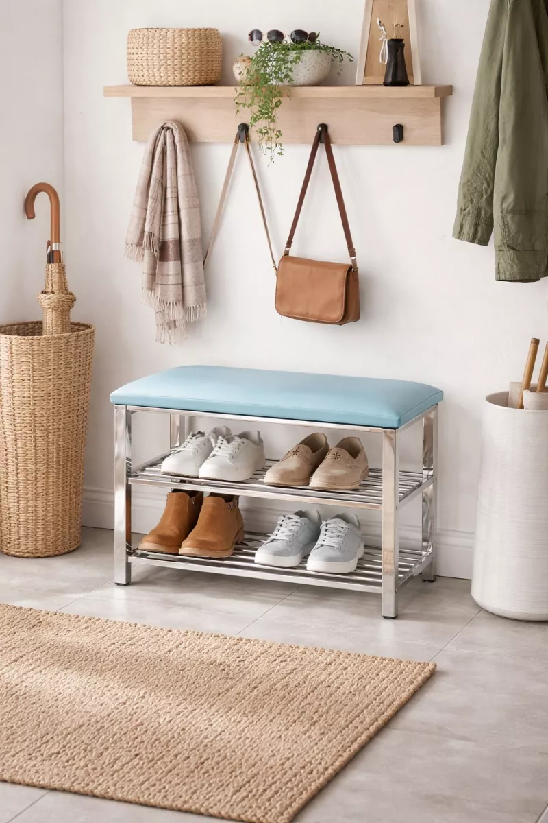 Diese Schuhbank mit Sitzkissen ist die ideale Kombination aus Komfort, Ordnung und Design – perfekt für ein stilvolles Zuhause.