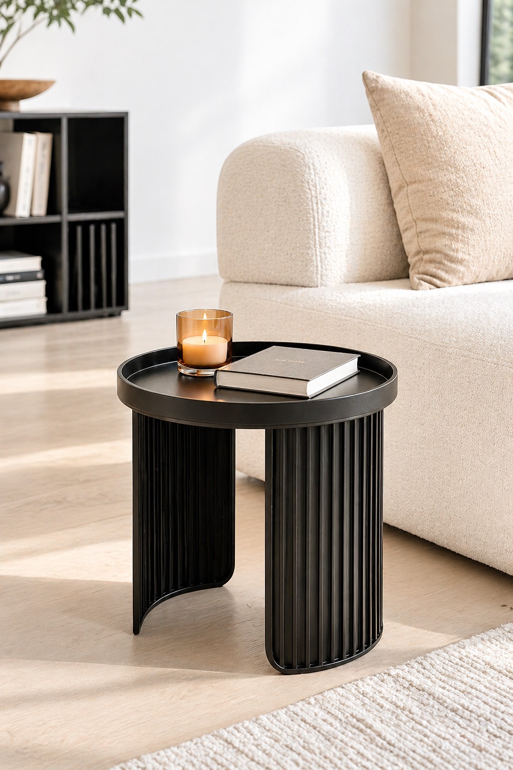 Setze stilvolle Akzente und bringe modernes Design in dein Zuhause mit diesem eleganten schwarzen Beistelltisch.