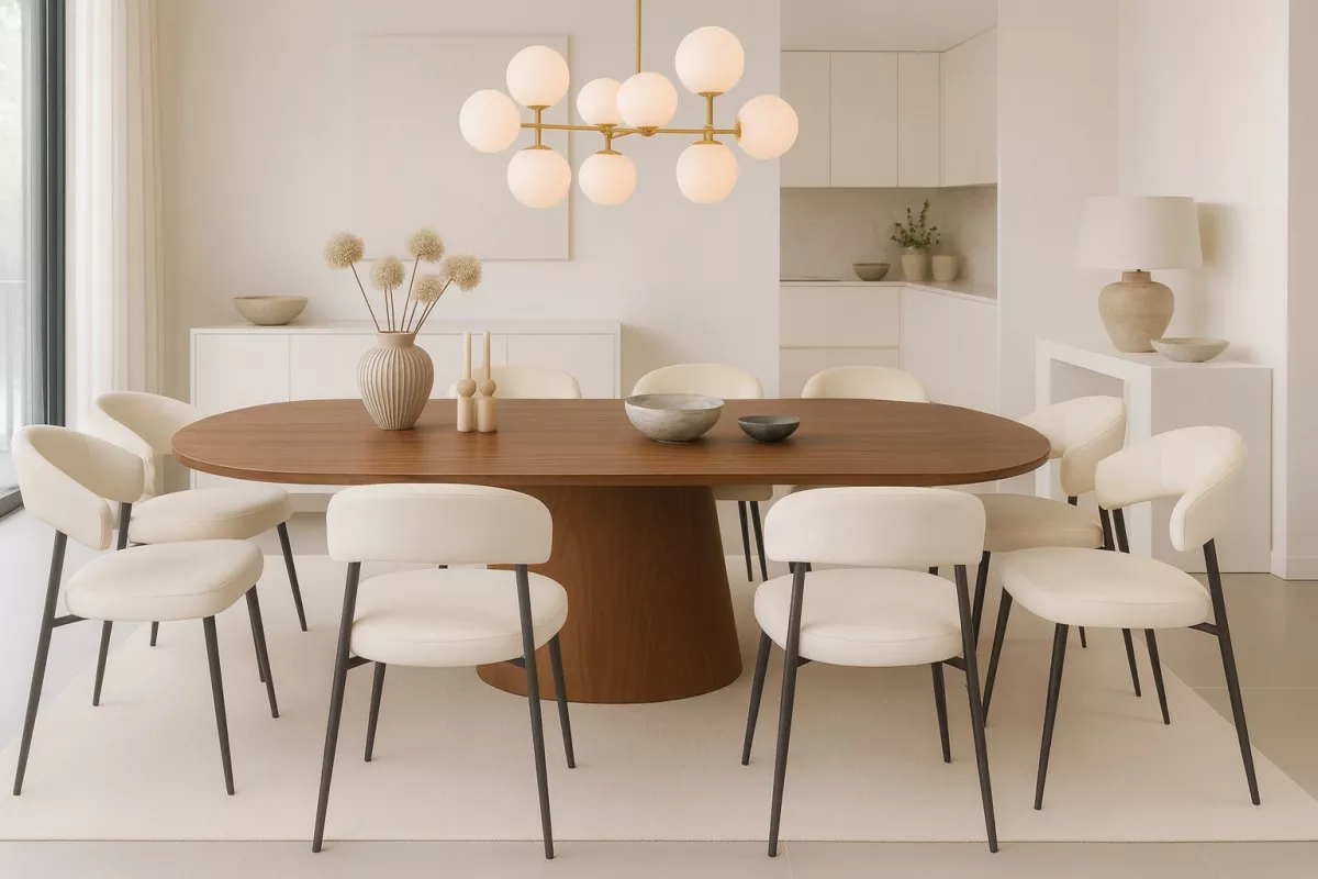 Die halbrunde Rückenlehne sorgt für einen besonderen Look.