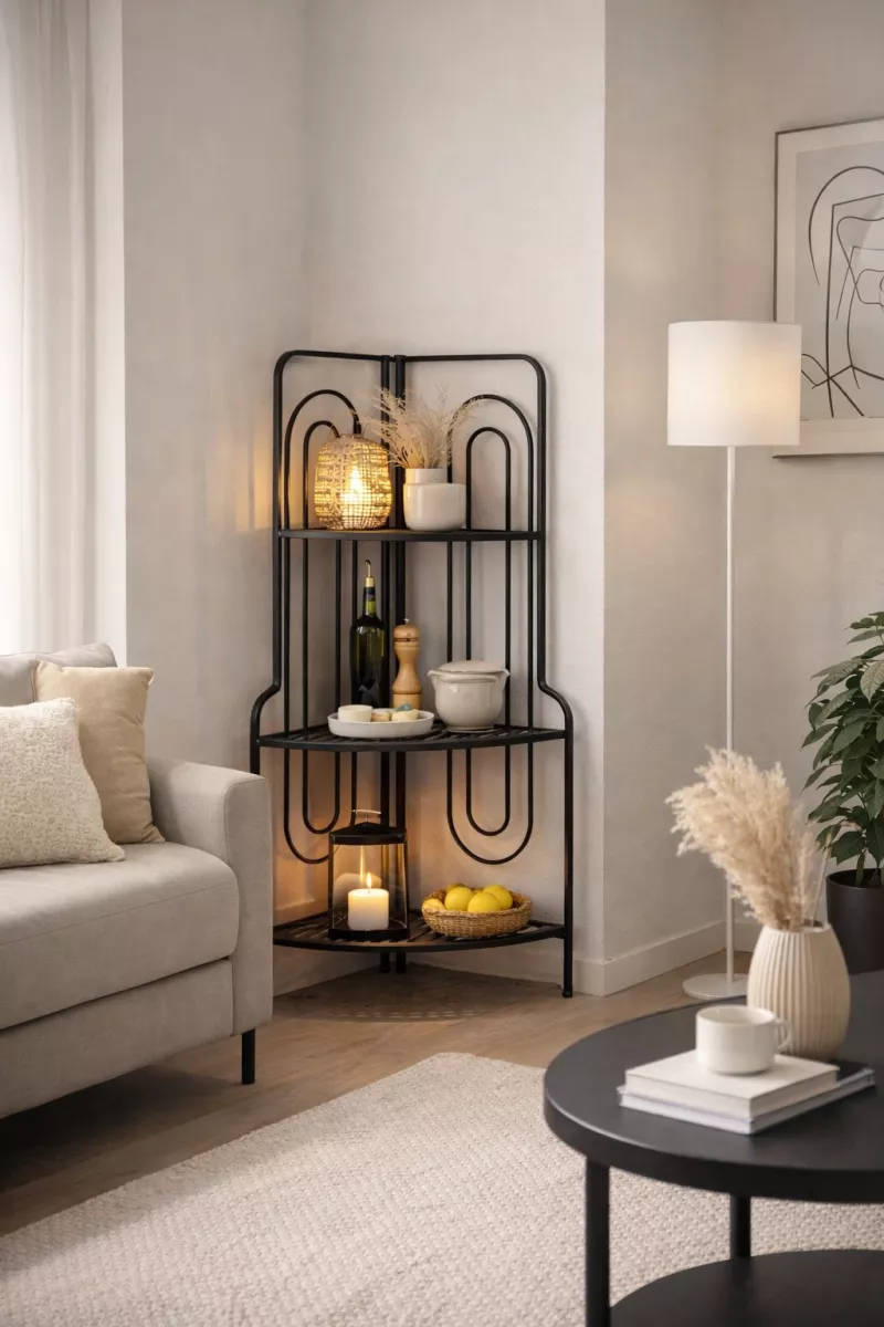 Dieses moderne Eckregal aus Metall ist die perfekte Lösung, um ungenutzte Ecken stilvoll und praktisch zu nutzen. Mit seinen drei stabilen Gitterablageböden bietet es ausreichend Platz für Pflanzen, Dekoartikel, Badezimmerutensilien oder Küchenzubehör – ideal für nahezu jeden Wohnbereich.
