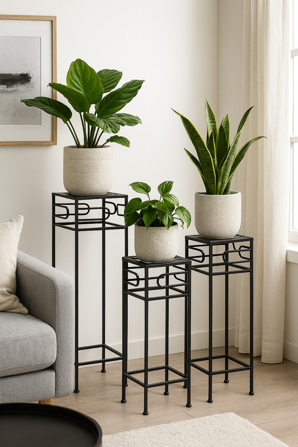 Dieses moderne Pflanzenständer-Set ist die perfekte Wahl für alle, die Wert auf Design, Qualität und eine stilvolle Präsentation ihrer Pflanzen legen – minimalistisch, elegant und vielseitig kombinierbar.