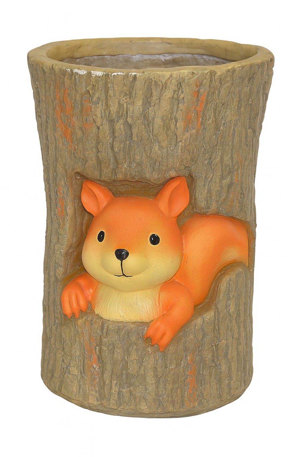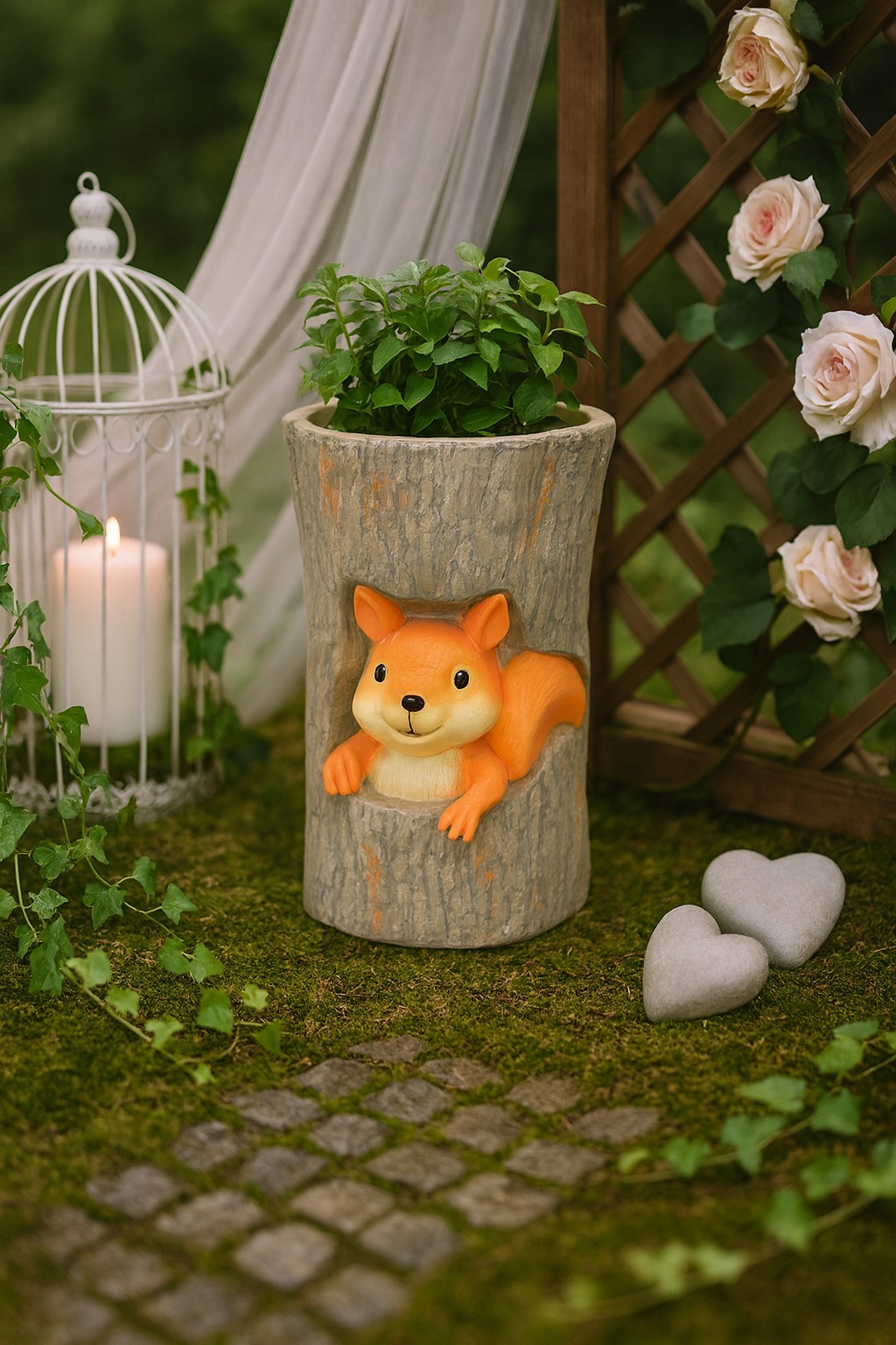Lustiger Pflanzkübel in Baumstamm-Optik mit Eichhörnchen – Dekorativer Blumentopf aus Polyresin für Garten & Terrasse