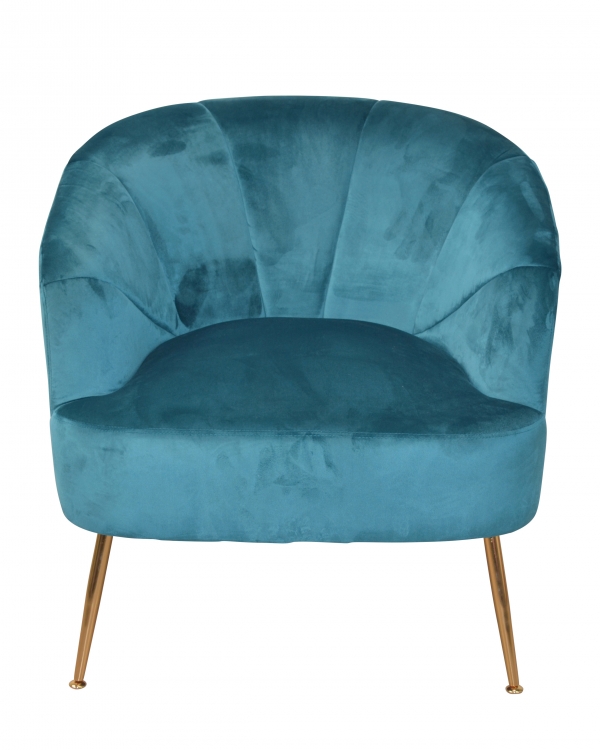 Moderner Polstersessel trendigen, goldfarbenen Stahlrohrbeinen, Korpus/Sitzschale teils aus Formholzplatten, teils aus MDF und Holz.
