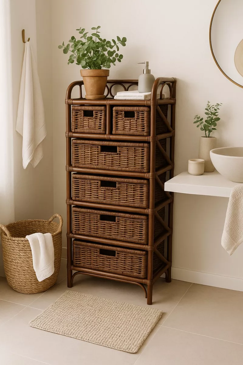 Wohnzimmer, Flur, Schlafzimmer oder Bad – das Rattanregal mit Schubkästen ist ein echtes Multitalent. Es bringt natürliche Wärme, aufgeräumte Struktur und zeitlosen Boho-Charme in jeden Raum.