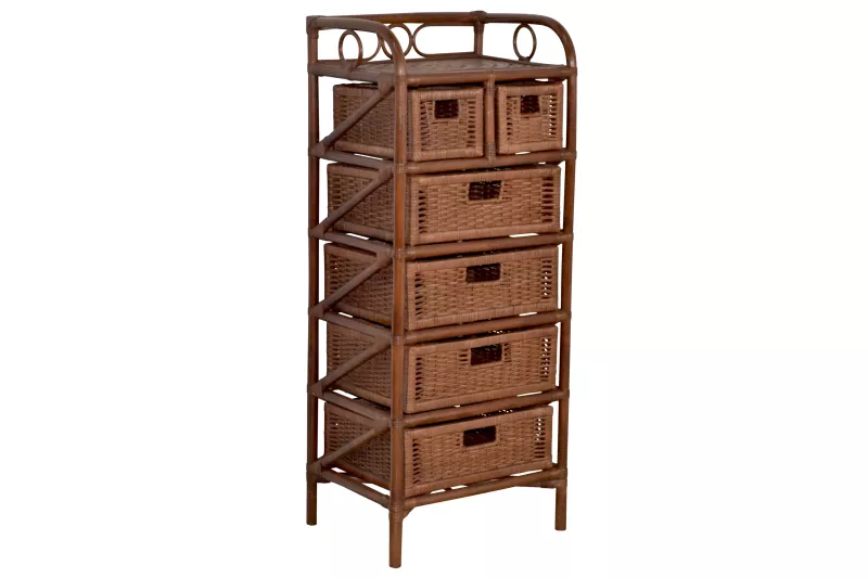 Durchdachtes Design: Oben ein Ablageboden aus Rattan, darunter 2 kleine und 4 große Schubkästen für vielseitige Nutzung