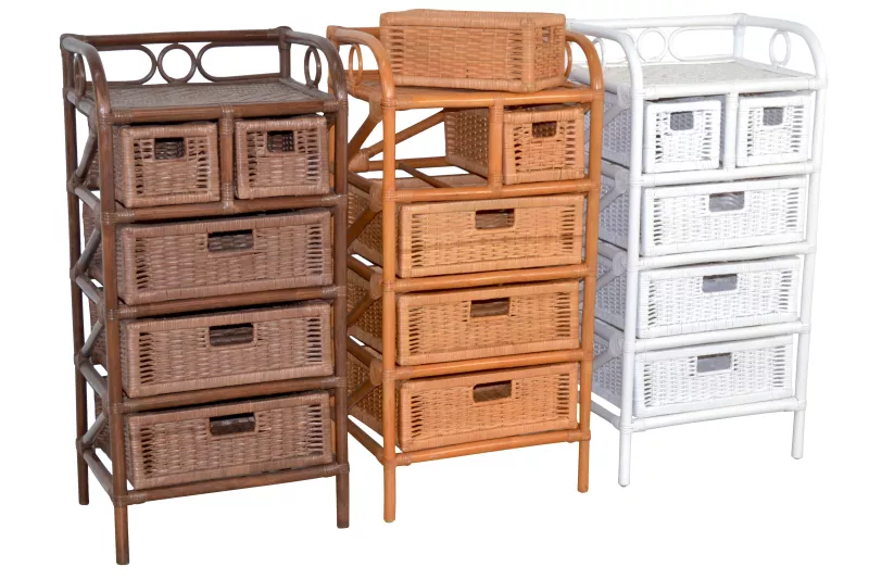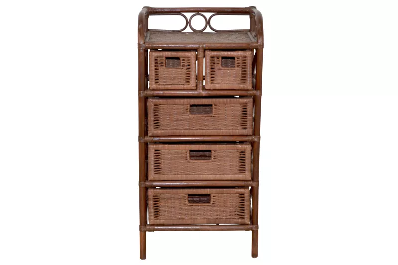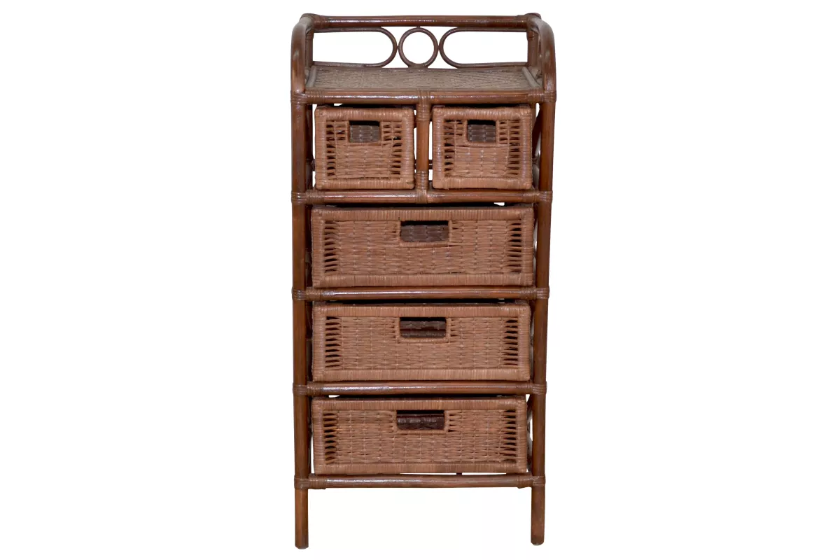 Funktionales Design: 5 lose eingeschobene Schubkästen mit stabilem Holzrahmen und eingeflochtenem Griff