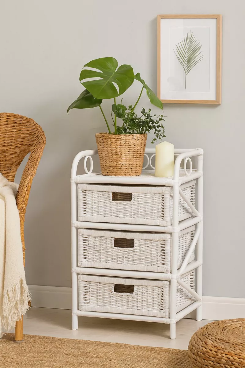 Ob im Schlafzimmer, Flur, Badezimmer oder Wohnzimmer – das weiße Rattanregal fügt sich harmonisch in jedes Interieur ein. Ideal als Aufbewahrungsmöbel, Kommode oder Ablageregal.