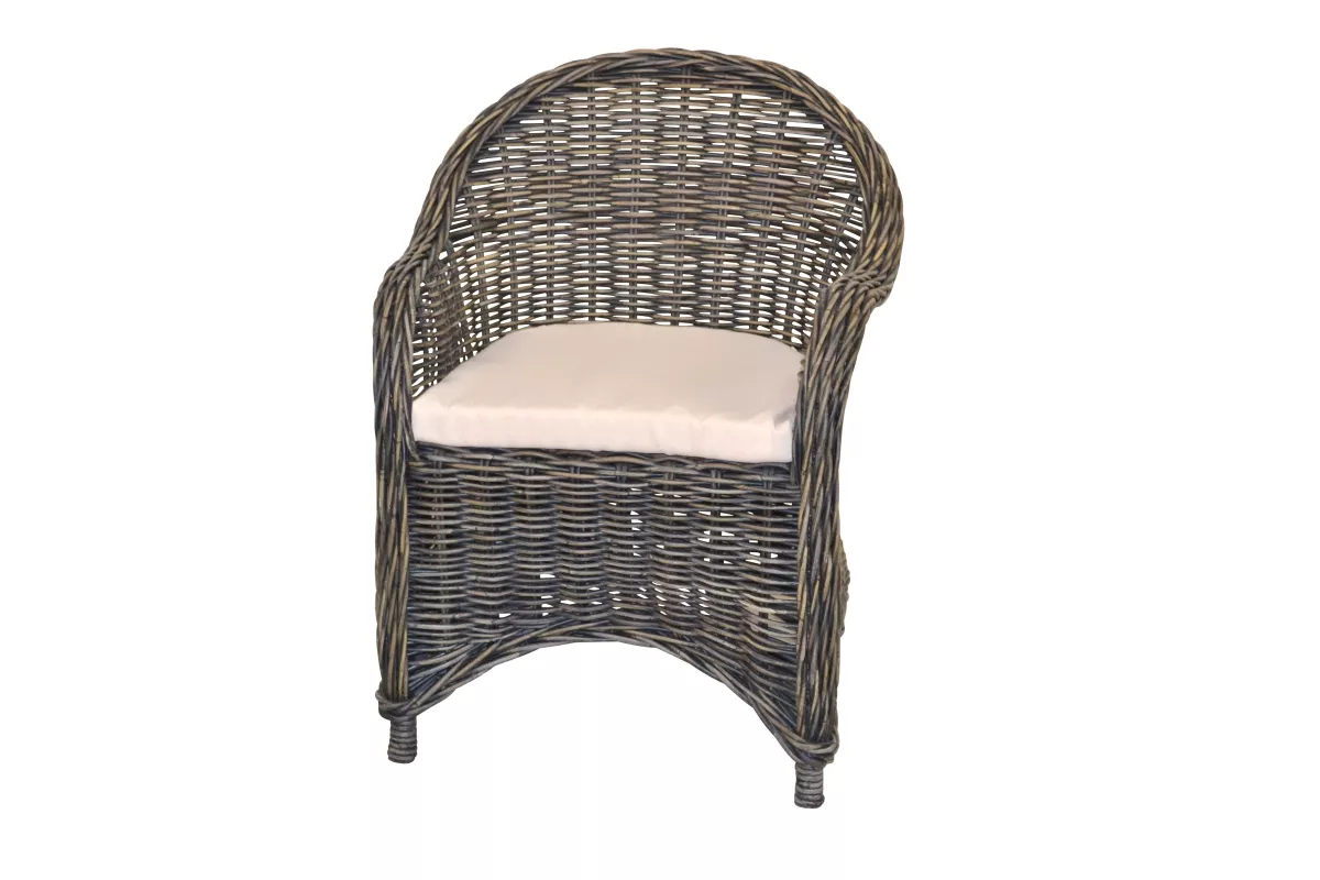 Der Sessel ist komplett aus Kubu-Rattan gefertigt und aufwändig, handgeflochten.