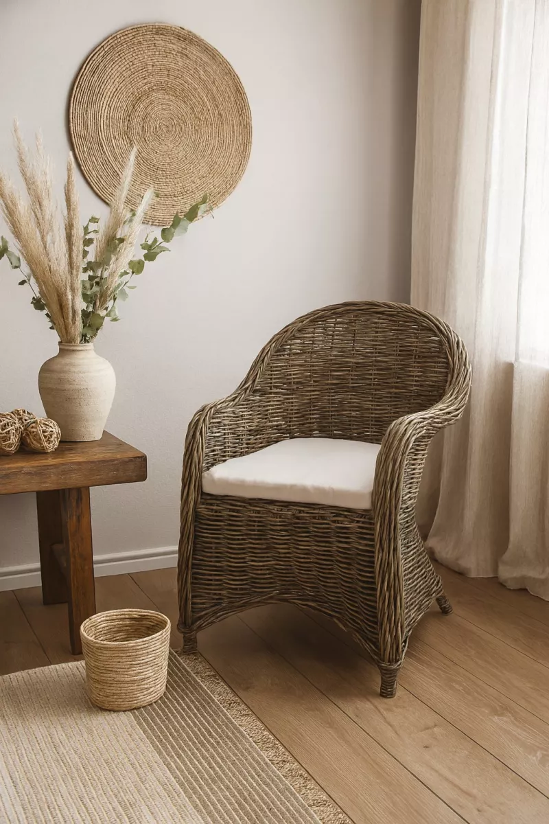 Entspannen und relaxen in diesem romantischen Rattansessel.