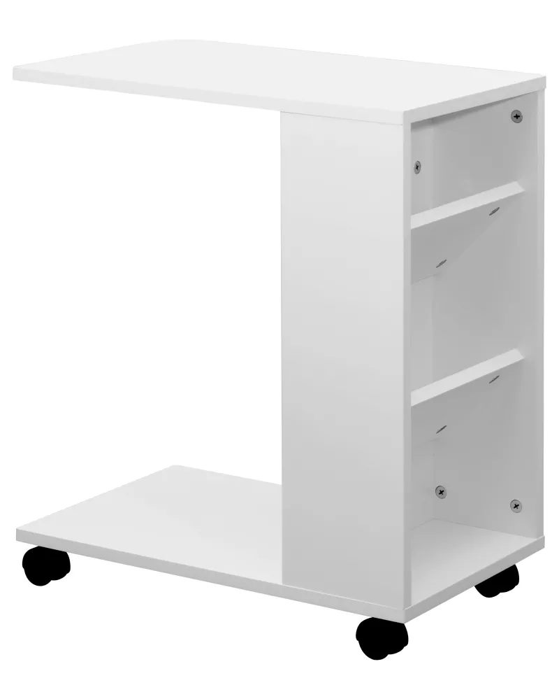 Dieses funktionelle Rollregal in Weiß kombiniert Beistelltisch und Stauraum auf kompakter Fläche. Mit 50 cm Breite, 60 cm Höhe und 30 cm Tiefe eignet es sich ideal als Sofatisch, Laptoptisch oder mobiler Beistelltisch im Wohn- oder Arbeitsbereich.