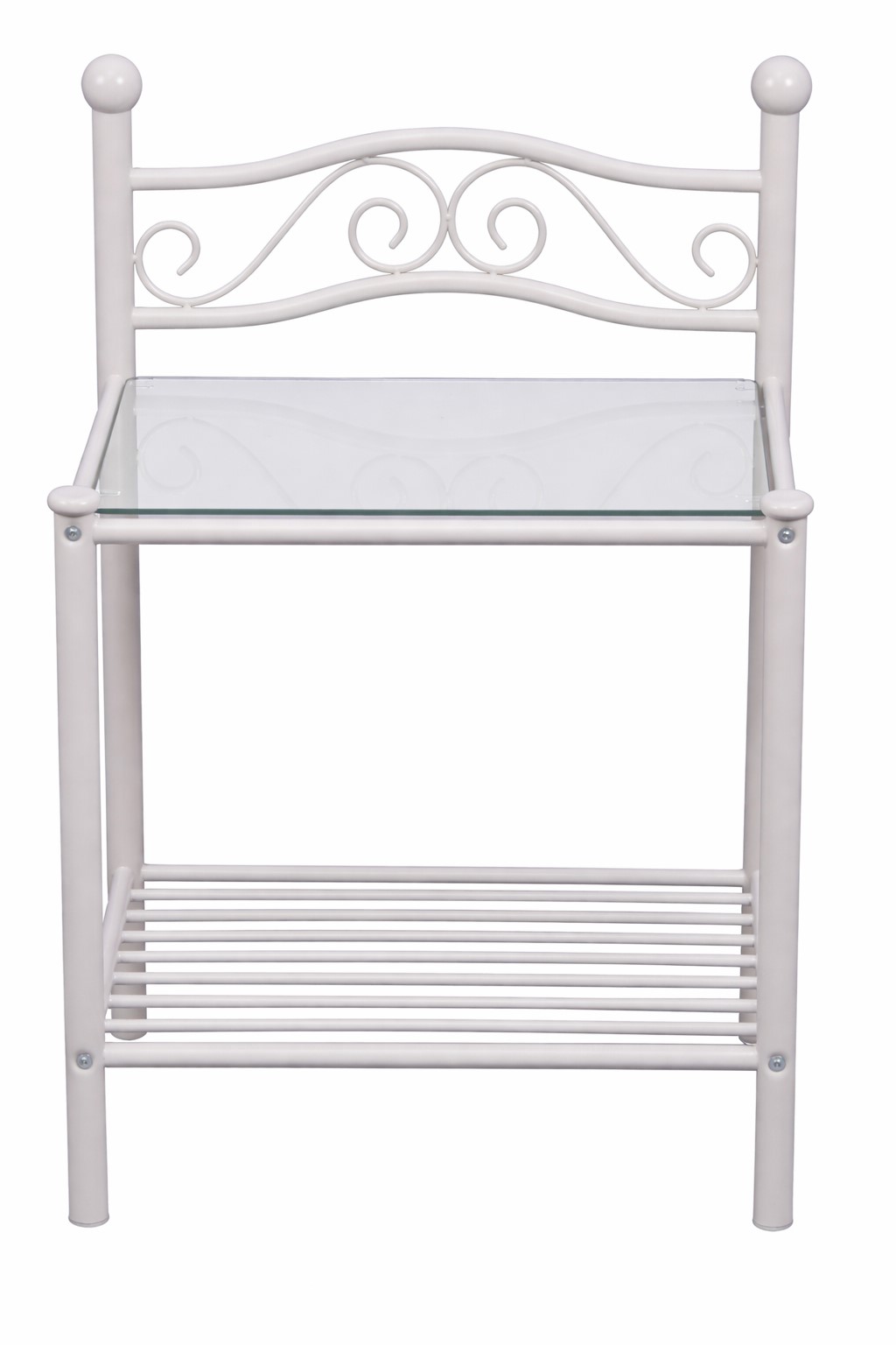 Mit seinem romantischen Design und den dekorativen Metallverzierungen wird dieser Nachttisch aus Metall schnell zum stilvollen Blickfang neben Ihrem Bett – ideal für Schlafzimmer im Landhausstil, Vintage-Stil oder Shabby Chic.