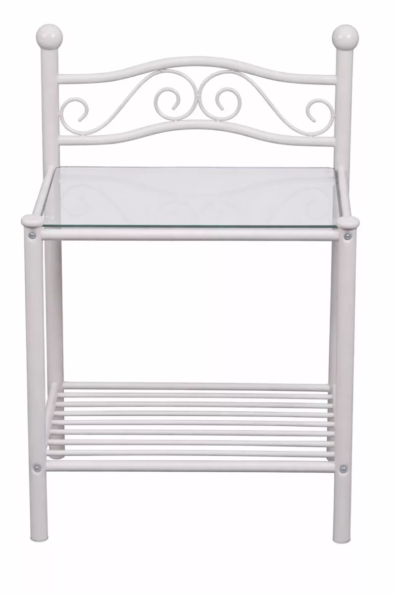 Diese romantische Nachtkonsole im Landhausstil verleiht Ihrem Schlafzimmer eine besonders gemütliche und stilvolle Atmosphäre. Das filigrane Metallgestell in cremeweiß pulverbeschichteter Ausführung sorgt für einen eleganten Vintage-Look und passt perfekt zu klassischen, romantischen oder modernen Landhaus-Einrichtungen.